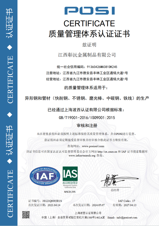 江西彰沅金属制品有限公司成立于2018年7月16日,由彰沅金属制品(深圳)有限公司投资设立。项目占地206亩,总建筑面积超7.8万平方米,总投资约10亿元人民币,于2021年5月正式投产,目前已实现整体建成。公司专注于特殊钢领域,以“特”为核心竞争力,具备“四特”优势:产品工艺独特;产量位居亚洲前列;在中国市场占有率名列前茅;生产工艺智能化水平处于行业翘楚地位。其专业生产含铅快削钢、环保快削钢、各类低中高碳钢、合金线材、手工具用钢等多种钢材产品,涵盖线材、棒材、异型材及普通钢...